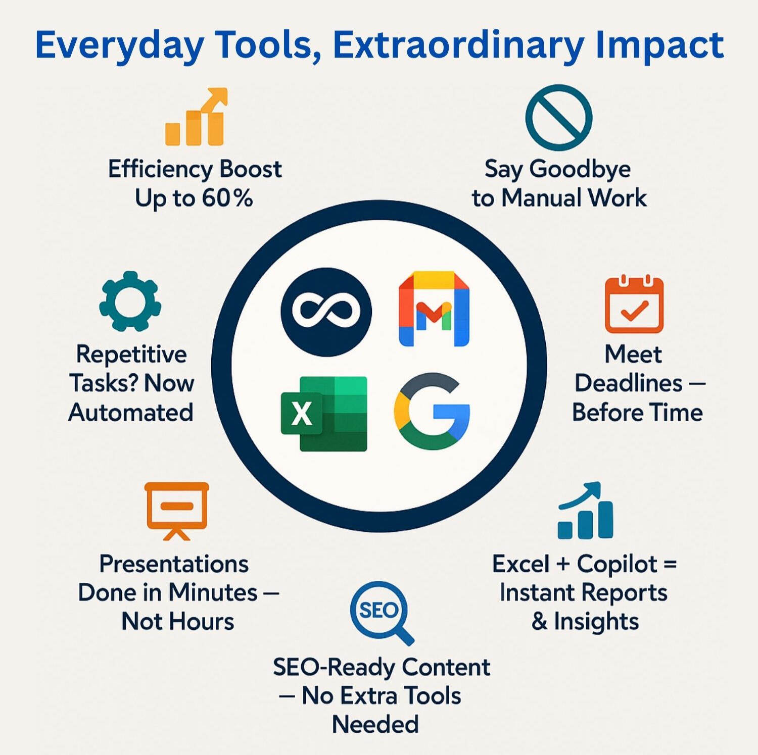 In my Copilot sessions, I don’t just show where the features are — I teach how to actually use them in real-life business tasks. Participants learn how to craft effective prompts to generate emails, reports, summaries, and presentations. We explore how Copilot can automate daily workflows across Word, Excel, Outlook, and Teams. I also cover what not to do, especially when dealing with sensitive or official documents. For organizations, I offer frameworks to help teams adopt Copilot sustainably, so they don’t just learn it — they live it.